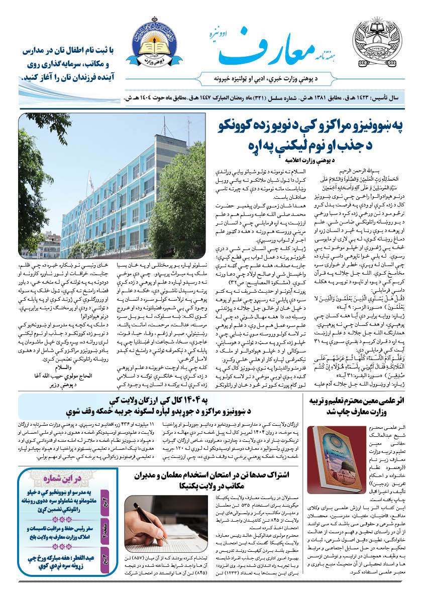د پوهنې وزارت د ښوونکو د روزنې او مسلکي پراختیا علمي کادرونو د ازموینې پایلو