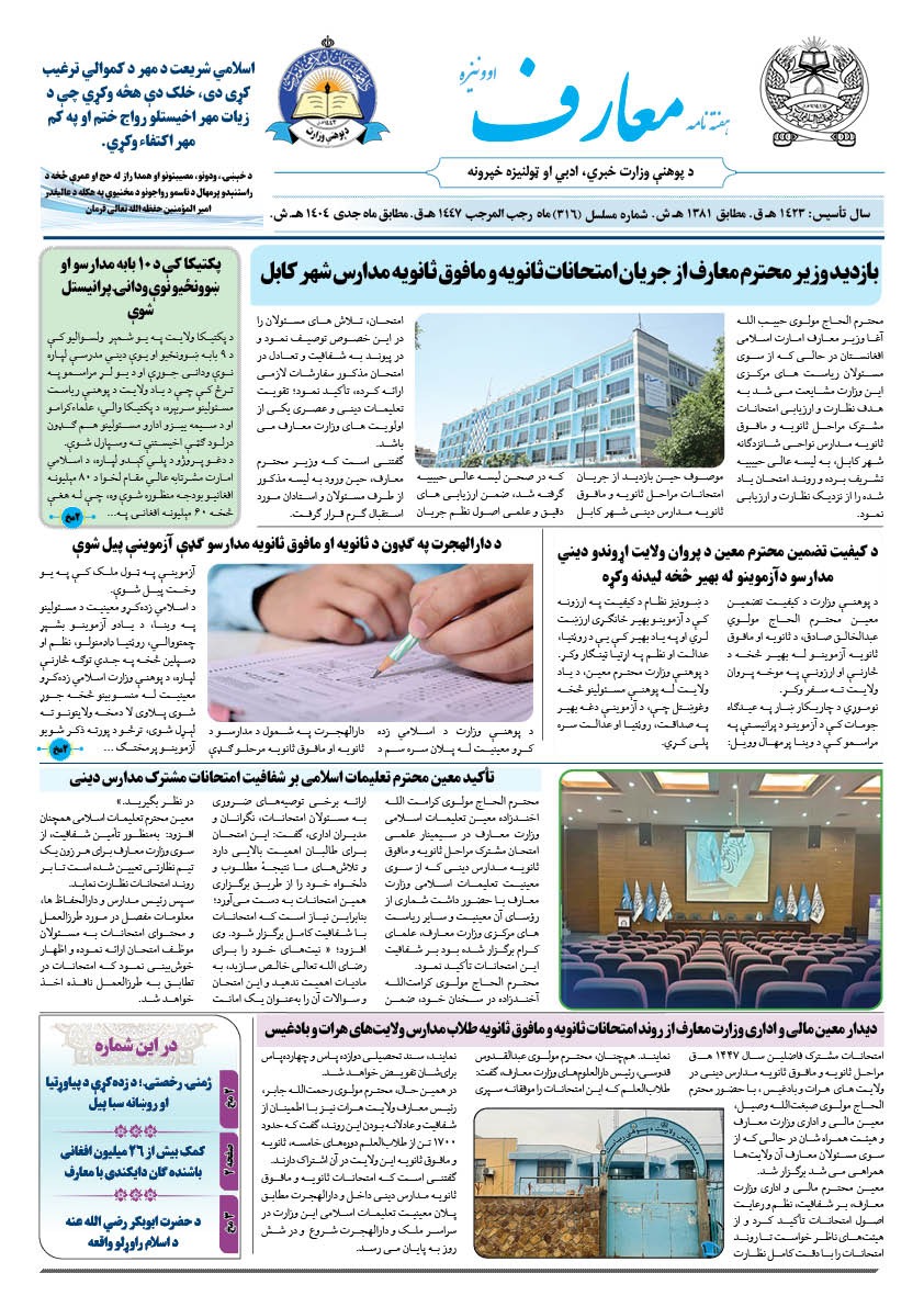د پوهنې وزارت د ښوونکو د روزنې او مسلکي پراختیا علمي کادرونو د ازموینې پایلو