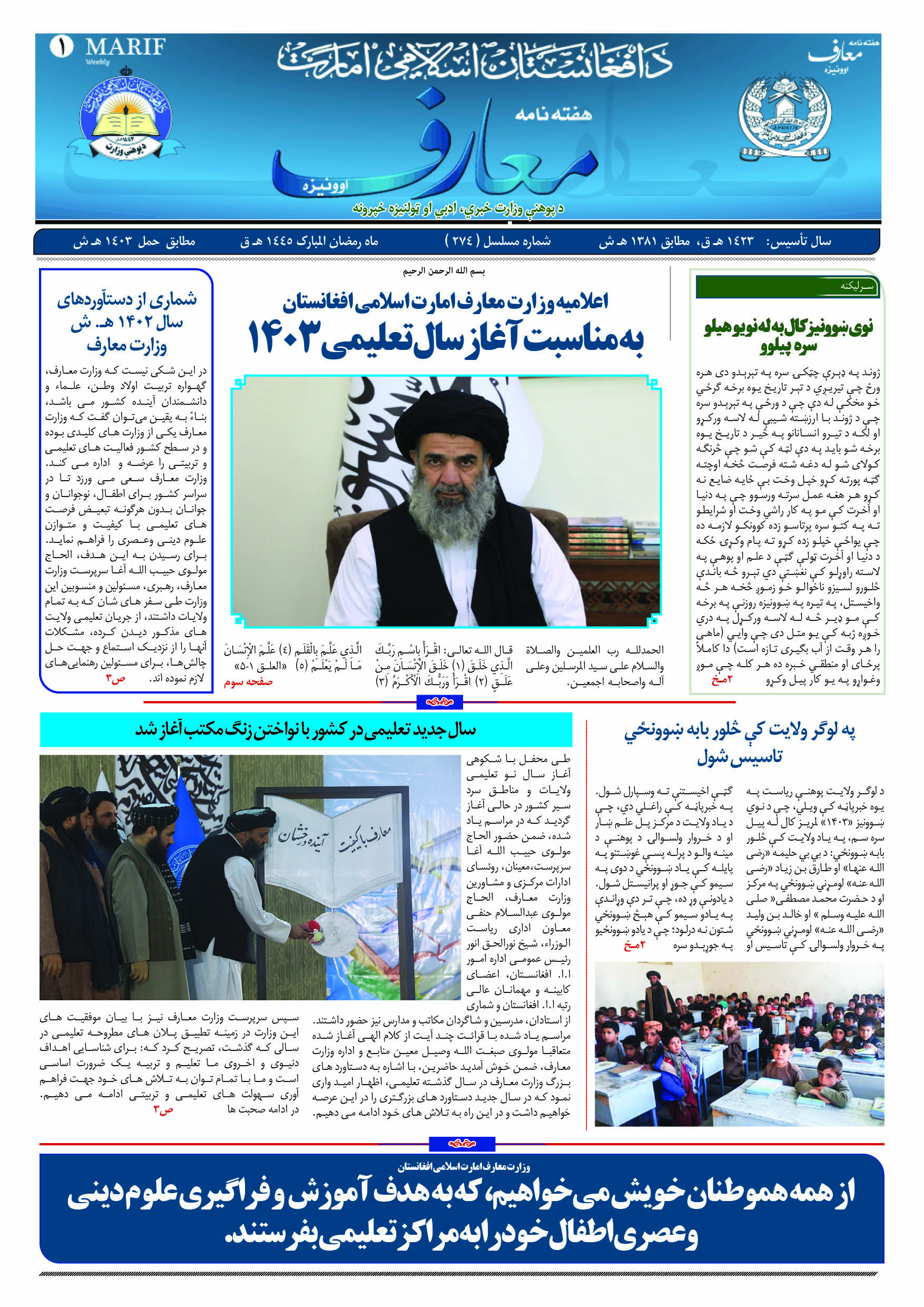 نتایج امتحانات دوره های ثانویه و مافوق ثانویه