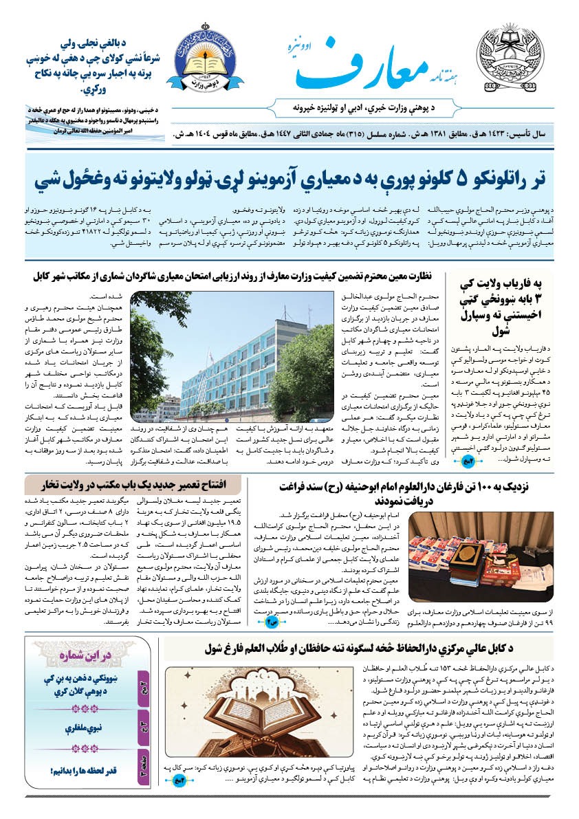 د پوهنې وزارت د ښوونکو د روزنې او مسلکي پراختیا علمي کادرونو د ازموینې پایلو